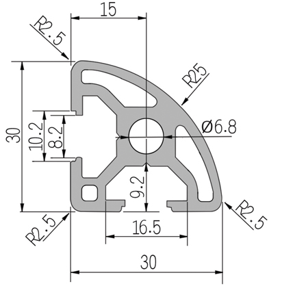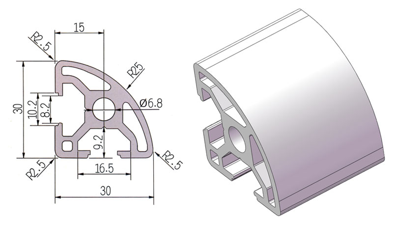 適用于應(yīng)力及強(qiáng)度較大的框架組合結(jié)構(gòu),它的外型采用圓角過渡,表面經(jīng)過陽極氧化處理,高雅美觀并抗腐蝕,它通常采用M8X20高強(qiáng)度專用螺栓加彈性扣件的內(nèi)部連接方式,堅(jiān)固而又可靠,是工業(yè)框架應(yīng)用最廣泛的型材之一。