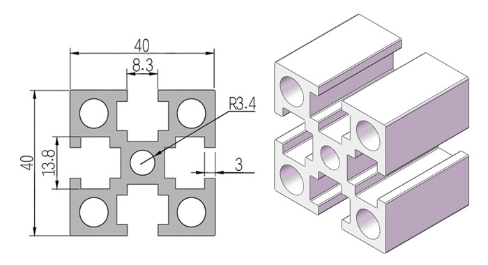 適用于應(yīng)力及強(qiáng)度較大的框架組合結(jié)構(gòu),它的外型采用圓角過渡,表面經(jīng)過陽極氧化處理,高雅美觀并抗腐蝕,它通常采用M8X20高強(qiáng)度專用螺栓加彈性扣件的內(nèi)部連接方式,堅(jiān)固而又可靠,是工業(yè)框架應(yīng)用最廣泛的型材之一。