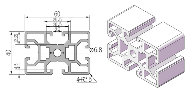 適用于應(yīng)力及強度較大的框架組合結(jié)構(gòu),它的外型采用圓角過渡,表面經(jīng)過陽極氧化處理,高雅美觀并抗腐蝕,它通常采用M8X20高強度專用螺栓加彈性扣件的內(nèi)部連接方式,堅固而又可靠,是工業(yè)框架應(yīng)用最廣泛的型材之一。