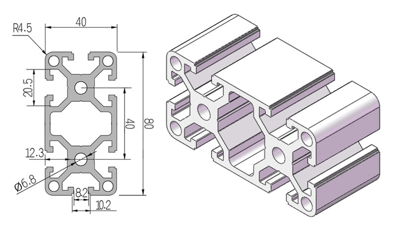 適用于應(yīng)力及強(qiáng)度較大的框架組合結(jié)構(gòu),它的外型采用圓角過(guò)渡,表面經(jīng)過(guò)陽(yáng)極氧化處理,高雅美觀并抗腐蝕,它通常采用M8X20高強(qiáng)度專用螺栓加彈性扣件的內(nèi)部連接方式,堅(jiān)固而又可靠,是工業(yè)框架應(yīng)用最廣泛的型材之一。