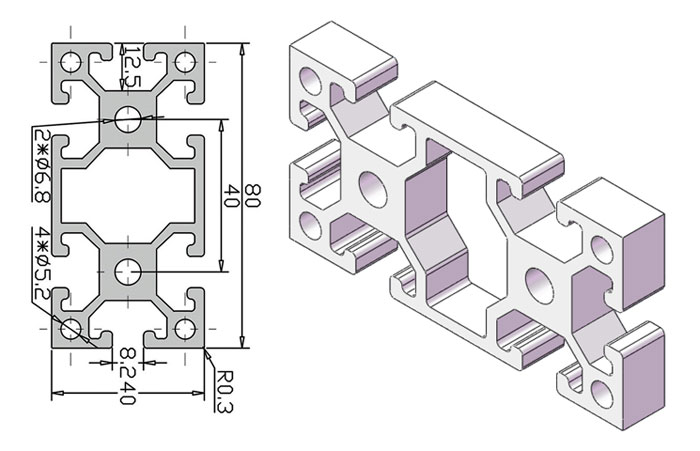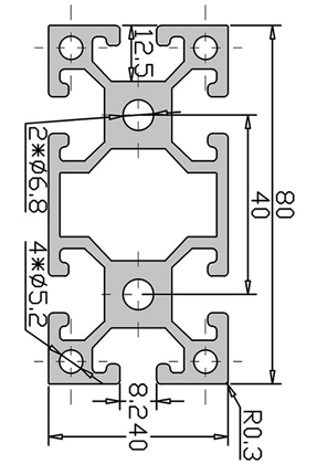 適用于應(yīng)力及強(qiáng)度較大的框架組合結(jié)構(gòu),它的外型采用圓角過渡,表面經(jīng)過陽(yáng)極氧化處理,高雅美觀并抗腐蝕,它通常采用M8X20高強(qiáng)度專用螺栓加彈性扣件的內(nèi)部連接方式,堅(jiān)固而又可靠,是工業(yè)框架應(yīng)用最廣泛的型材之一。