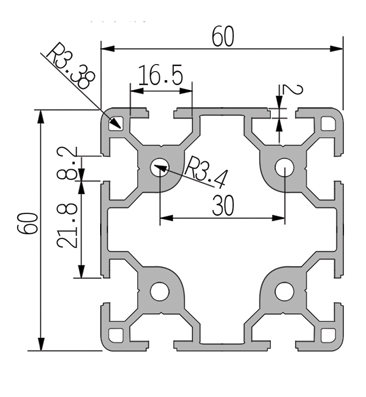 適用于應(yīng)力及強度較大的框架組合結(jié)構(gòu),它的外型采用圓角過渡,表面經(jīng)過陽極氧化處理,高雅美觀并抗腐蝕,它通常采用M8X20高強度專用螺栓加彈性扣件的內(nèi)部連接方式,堅固而又可靠,是工業(yè)框架應(yīng)用最廣泛的型材之一。