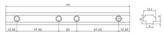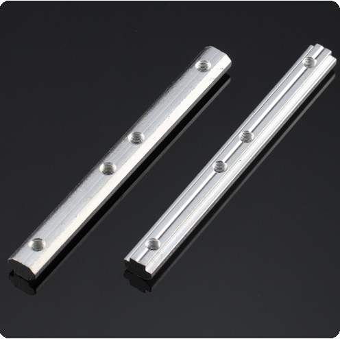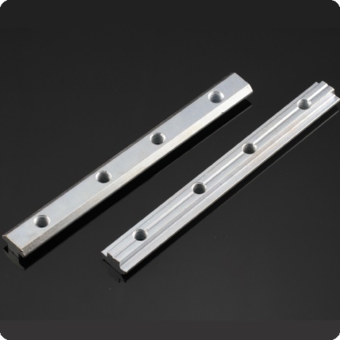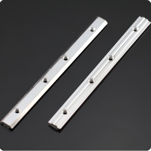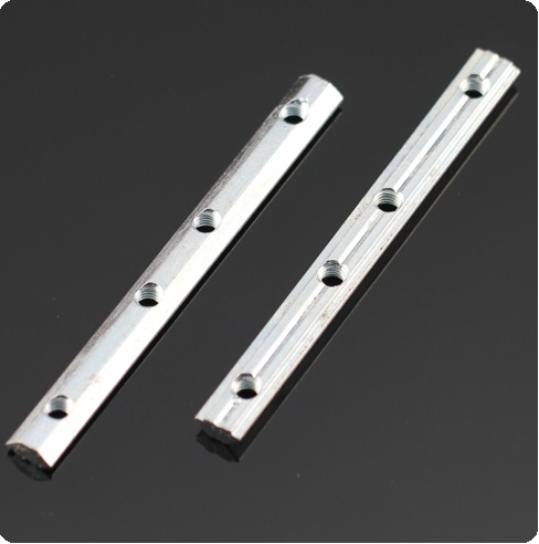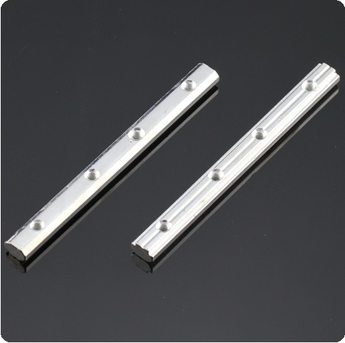 一字對連接體:用于兩根型材之間直線加長連接,安裝時將其插入兩根型材對接觸的槽坑內(nèi),然后用緊定螺絲鎖緊。